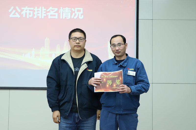 發布會上,QC課題的詳實內容及發布人繪聲繪色、深入淺出的講解,贏得評委和現場觀眾充分肯定和好評。經過評選,備煤分廠《提高堆煤工序卸車效率》課題榮獲一等獎,恒信科技《提高純苯質量控制指標達標率》、動力分廠《提高電解水處理效率》及機焦二期《提高地面站裝煤系統吸力》分獲二等獎,動力分廠發布人詹炫炫獲“最佳發表人”稱號。吳總及其他評委分別為他們頒獎,表示鼓勵。